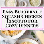 Creamy, comforting butternut squash and chicken risotto featuring roasted squash and tender shredded chicken, perfect for an autumn dinner.