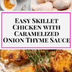 Tender seared chicken breasts smothered in a rich caramelized onion and thyme pan sauce, perfect for an elegant dinner or an easy weeknight meal.