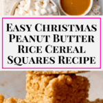 Festive no-bake cereal squares made with creamy peanut butter, crispy rice cereal, and sweet holiday toppings. These Christmas Peanut Butter Rice Cereal Squares are easy to make and perfect for holiday treat platters or as a delightful snack for all ages.