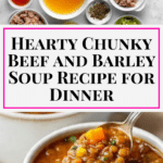 A hearty and filling Chunky Beef and Barley Soup loaded with tender beef, nutty barley, and flavorful vegetables. This comforting American classic is perfect for warming up on cold days with its rich broth and satisfying textures.