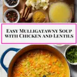 A rich and aromatic Mulligatawny Soup featuring Indian-inspired spices, tender shredded chicken, red lentils, and a subtle sweetness from apples. This comforting soup combines bold flavors with creamy coconut milk, perfect for a warming meal any time of the year.