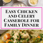 Comforting baked Chicken and Celery Casserole with tender shredded chicken, crisp celery, a creamy savory sauce, and a crispy golden cracker topping. This homestyle dish is easy to prepare and perfect for family dinners or potlucks, combining simple ingredients for a hearty, satisfying meal.