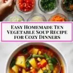There is something truly special about a homemade soup that warms both your body and soul, and this Homemade Ten Vegetable Soup Recipe delivers just that. It’s a delightful way to enjoy a variety of vegetables, filled with flavor and comfort in every bowl. Give it a try, and soon you’ll find yourself reaching for this recipe again and again for a nourishing, satisfying meal that feels like a cozy hug from the inside out.