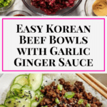 Quick and flavorful Korean beef bowls featuring tender ground beef simmered in a sweet and savory garlic-ginger sauce. Served over rice and topped with crisp vegetables, this easy Korean-inspired dinner is perfect for busy weeknights and meal prep.