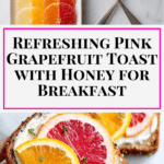 Try presenting your Pink Grapefruit Toast with Honey Recipe on a rustic wooden board for a casual brunch vibe or use a crisp white plate for a clean, elegant look. You can also cut the toast diagonally for bite-sized pieces perfect for entertaining or stack several layers with a little cheese between for a fun, visually appealing twist.