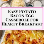 Potato bacon egg casserole is a comforting and hearty breakfast dish that combines tender potatoes, crispy bacon, fluffy eggs, and melted cheese in a baked casserole. This easy-to-make recipe is perfect for weekend brunches, make-ahead breakfasts, or feeding a hungry crowd with a satisfying and flavorful meal.