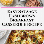 This sausage hashbrown breakfast casserole is a hearty and comforting dish combining crispy hashbrowns, savory breakfast sausage, eggs, and melted cheese. Perfect for busy mornings, holidays, or serving a crowd, it can be made ahead and baked for a delicious, satisfying breakfast.