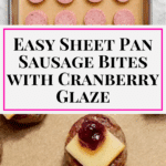 These Sheet Pan Smoked Sausage Cranberry Bites combine savory smoked sausage with a tangy, sweet cranberry glaze, creating a perfect sticky and flavorful snack for holiday parties or any festive occasion.