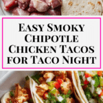These Smoky Chipotle Chicken Tacos feature juicy chicken marinated in a bold, smoky chipotle sauce and cooked to perfection. Served in warm tortillas with fresh toppings like shredded lettuce, red onion, and cilantro, they’re a flavorful and satisfying meal perfect for taco night or casual gatherings.