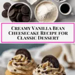 A rich and creamy vanilla bean cheesecake featuring a buttery graham cracker crust and delicate vanilla flavor, perfect for special occasions or elegant desserts.